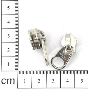 Slider+pull to be used with YKK 6mm coil zipper tape ( Y_ZCT_6) or to make your own zippers. Non-locking slider.