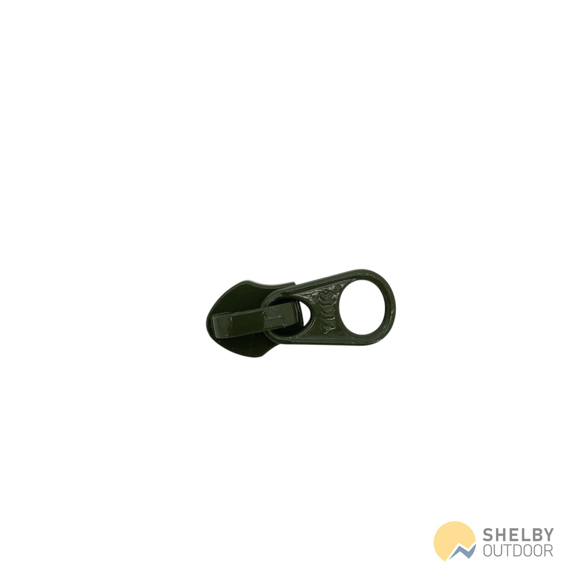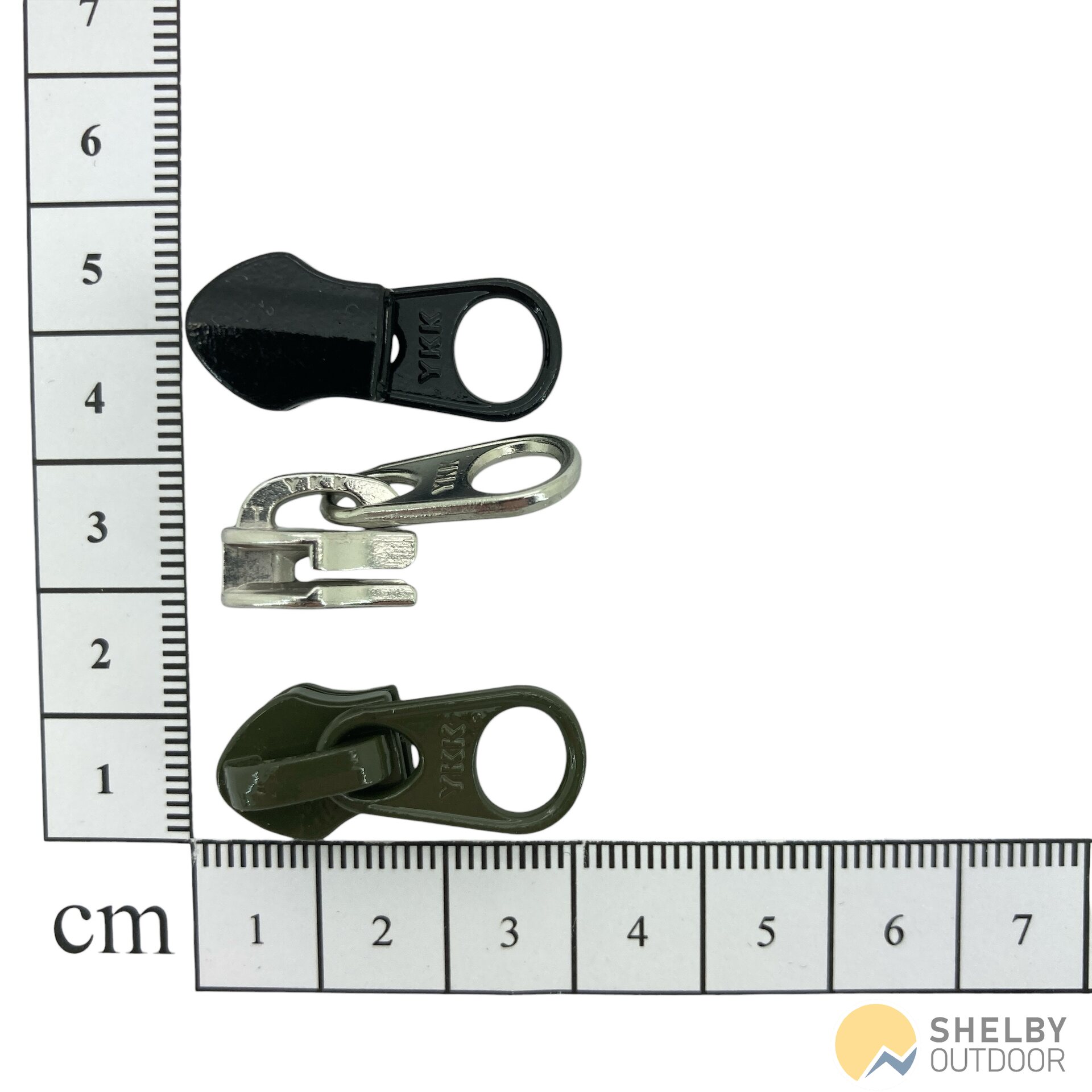 Slider+pull to be used with YKK 6mm coil zipper tape ( Y_ZCT_6) or to make your own zippers. Non-locking slider.