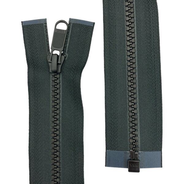 Top quality 6 mm outdoor zippers from YKK. Black with durable black metal sliders. Big holed and wide pull that is easy to grasp.