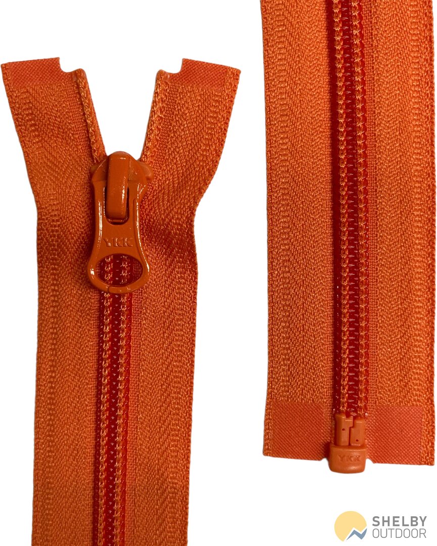 Zip with durable metal sliders. Big holed and wide pull that is easy to grasp.