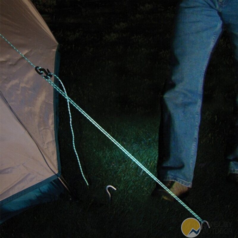 The Nite Ize Reflective Cord comes in 15 meters length, and is perfect for things like tent guy lines, hanging bear bags, boating, tying up tarps or shelters, and then being able to see where it is when you're done. Made of sturdy nylon with a special reflective strip woven into it that reflect brightly when light is shined onto it, the Nite Ize Reflective Cord increases safety for you and the people around you on the trail, campsite, water, and highway.