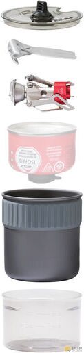 Sisältää: PocketRocket 2 keitin, 0,75 litran kova-anodisoitu alumiinikattia, 4150 ml kulho*, läpikuultava kansi* kaatorei'illä, ultrakevyt mini kattilan kahva, pakkauspussi. Tilaa jää 100 g kaasupatruunalle (myydään erikseen).