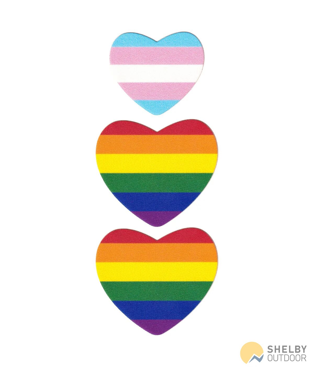 STRETCH Pride includes a selection of colorful hearts — flexible FabPatch™ patches designed for versatile repair of clothing and gear. Limited batch made during 2025.